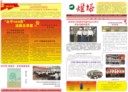 2014年6月26日,國能中電塔山維護項目部參加山西漳電大唐塔山發(fā)電公司召開的“大干100天、決勝三季度”專項活動動員會,并與業(yè)主簽訂了安全生產(chǎn)責任狀。項目部為此制定了各項組織、技術(shù)、安全措施。同時,項目部專題稿件“大干100天,脫硫在行動”榮登于塔山發(fā)電公司《塔山燈塔報》第23期一、二版。