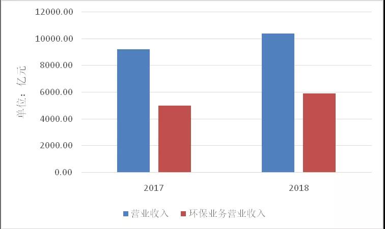圖1. 2017、2018年列入統(tǒng)計的相同樣本環(huán)保企業(yè)營業(yè)收入、環(huán)保業(yè)務營業(yè)收入