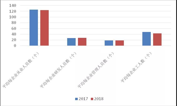 圖6. 2017、2018年列入統(tǒng)計的相同樣本企業(yè)平均各類從業(yè)人員數(shù)