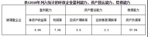 從資產(chǎn)營運能力看,被調(diào)查企業(yè)總資產(chǎn)周轉率平均值為0.6、應收賬款周轉率平均值為3.3,均較低,與2017年相比,2018年企業(yè)的總資產(chǎn)周轉率同比與2017年持平;應收賬款周轉率略有所下降。反映環(huán)保企業(yè)的資產(chǎn)營運能力基本保持穩(wěn)定,回款問題仍較突出。